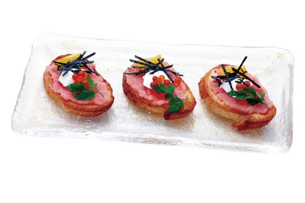 甘えびとアボガドのタルタルガーリックトースト添え 720円